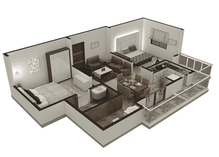 تصميم ثلاثي الأبعاد للعقارات قيد الإنشاء.